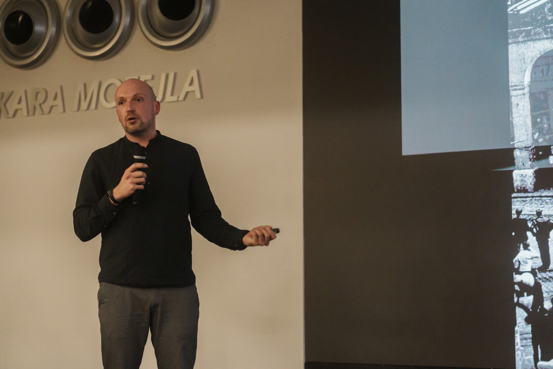 O architektuře bývalých výborů KSČ s historikem architektury Miroslavem Pavlem v prostorách bývalého Okresního výboru.